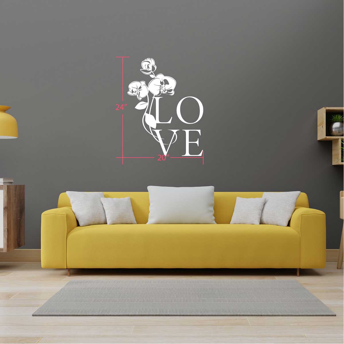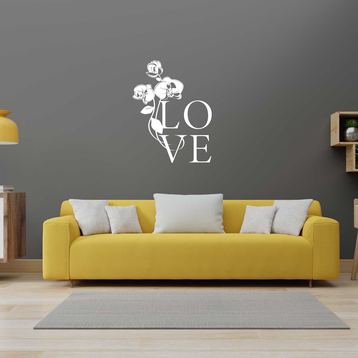 Adhésif mural – Love accompagné de fleurs.